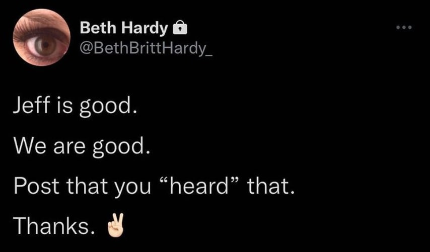 [adthrive-in-post-video-player video-id=”9hTrsRNN” upload-date=”2021-12-06T11:49:52.000Z” name=”Jeff Hardy Leaves Match” description=”” player-type=”default” override-embed=”default”]Now it appears that drugs or alcohol was involved, as it has been reported by multiple sources that WWE has released Hardy after he turned down their offer of rehab. Not much more is known regarding the situation; however, his wife Beth has since tweeted out to her followers that Jeff is doing fine and appears to be playing down concerns.