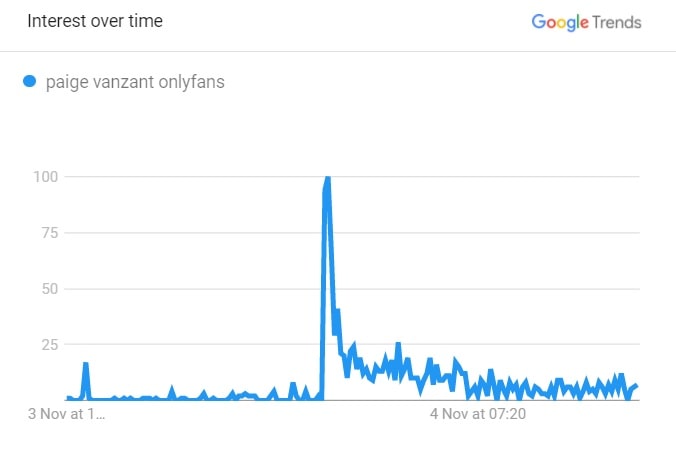 [adthrive-in-post-video-player video-id=”N7m6qIyO” upload-date=”2021-11-04T13:22:25.000Z” name=”Paige VanZant Promo” description=”” player-type=”default” override-embed=”default”]For those unaware Only Fans is a subscription service, which isn’t solely for adult content, but is best known for it. The mention of VanZant and the website clearly caught the attention of AEW fans since the search term “paige vanzant only fans” would see a massive surge on Google shortly afterward. A graph detailing this is below, and the spike coincides with the segment airing.