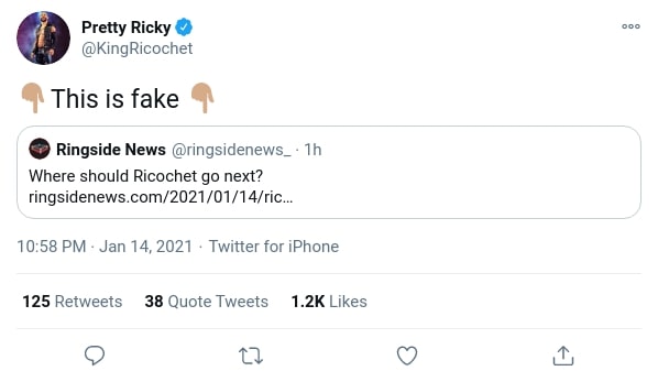 Therefore when rumors started to be spread across wrestling sites that Ricochet hadn’t re-signed with WWE, it seemed plausible he could soon be a free agent. Especially when you consider, he has recently been losing matches to RETRIBUTION members over recent weeks. However, Ricochet has now taken to social media and disputed he is departing the company, as you can see below.