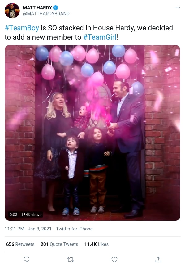Matt Hardy has taken to Twitter to reveal the happy news that his wife Reby is pregnant with their fourth child. The couple began dating in 2011, married in 2013, and have three sons named Maxel, aged 5, Wolfgang, aged 3, and Bartholomew, who is 13 months. In the announcement, which you can view below, Matt confirms they are expecting a girl. Congratulations to both Matt and Reby at this exciting time.