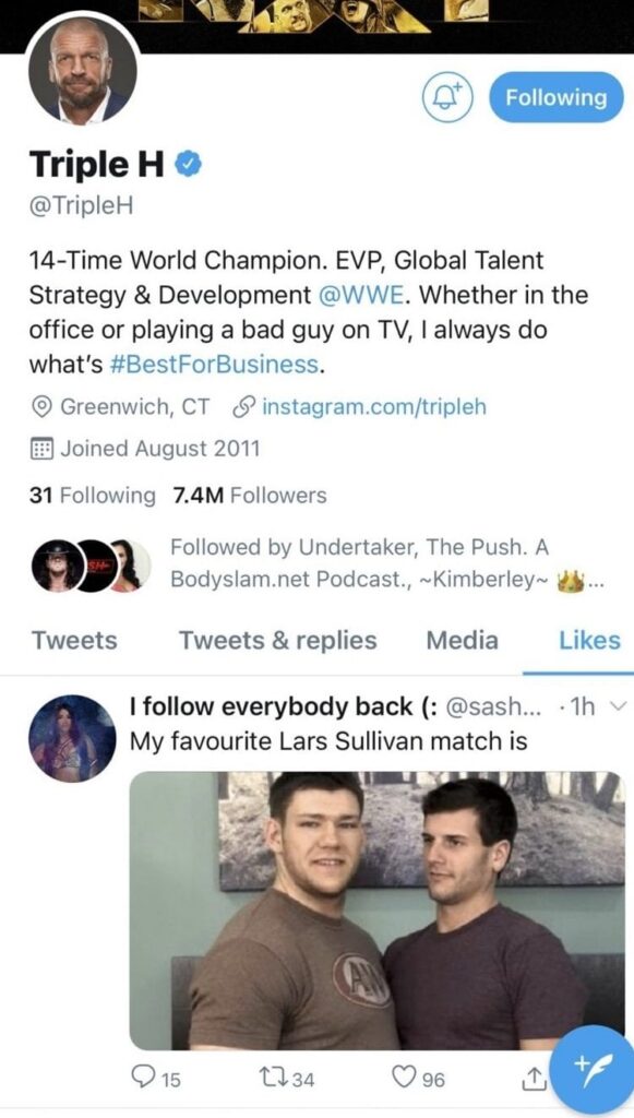 Triple H either hit like by accident or realized afterward it probably wasn’t a good look to like such a tweet and unliked it, but not before a fan took a screenshot.