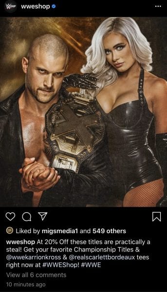 Surprisingly, WWE has potentially spoiled another NXT Championship match result, as WWE’s social media team posted an advertisement early. The ad in question promoted title belts at 20% off and featured Karrion Kross’ photo with the NXT Championship draped over his shoulder. The post was quickly deleted, but again numerous screenshots were taken and shared as you can see below.