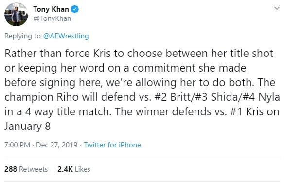 So Statlander will now challenge for the title on January 8th, and we’ll have to wait and see if there are any consequences for her for not making the booking clash known before AEW booked her in a title match form the same day.