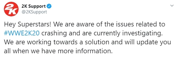 2K is aware of the problem and posted the below tweet earlier today.
