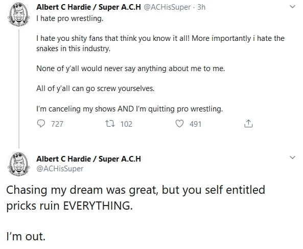 After making a surprise appearance for MLW on Thursday and rejoining the company, ACH has done an about-turn on his wrestling career. He has canceled all upcoming bookings and quit the business.