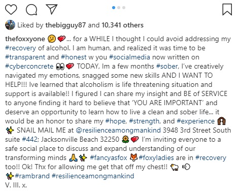 She has now confirmed on Instagram she has an alcohol problem but is currently sober.