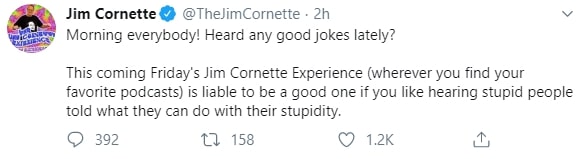 Cornette though does not appear to be apologetic or remorseful judging by the below tweet he made shortly after the announcement.