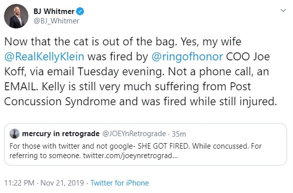 “We don’t generally discuss personal issues but they seem to have made it public, we didn’t fire Kelly Klein, we just notified her that we would not be renewing her contract.”Klein recently allowed a disgruntled Joey Mercury to reveal private emails between ROH and herself, plus her requested salary of just $24,000. These emails and salary reveal caused ROH much embarrassment and are likely the reason she won’t be with the promotion after 31st December. The promotion has one more PPV, and one TV taping before her contract expires so it will be interesting to see how her departure is handled given the animosity.