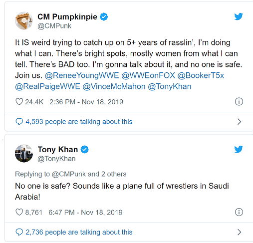 He is now all WWE in the war against AEW and decided to unnecessarily chime in during an exchange between CM Punk and Tony Khan. You can read the whole interaction below.